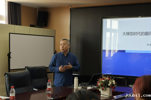 4月16日下午,北京语智云帆科技有限公司(试译宝)总经理师建胜应邀莅临优米米app下载专区,作了题为“大模型时代的翻译专业职业规划与应变”的专题报告。报告会由MTI教育中心主任许家绍副教授主持,翻译系和英语系部分教师和硕士研究生参加讲座。