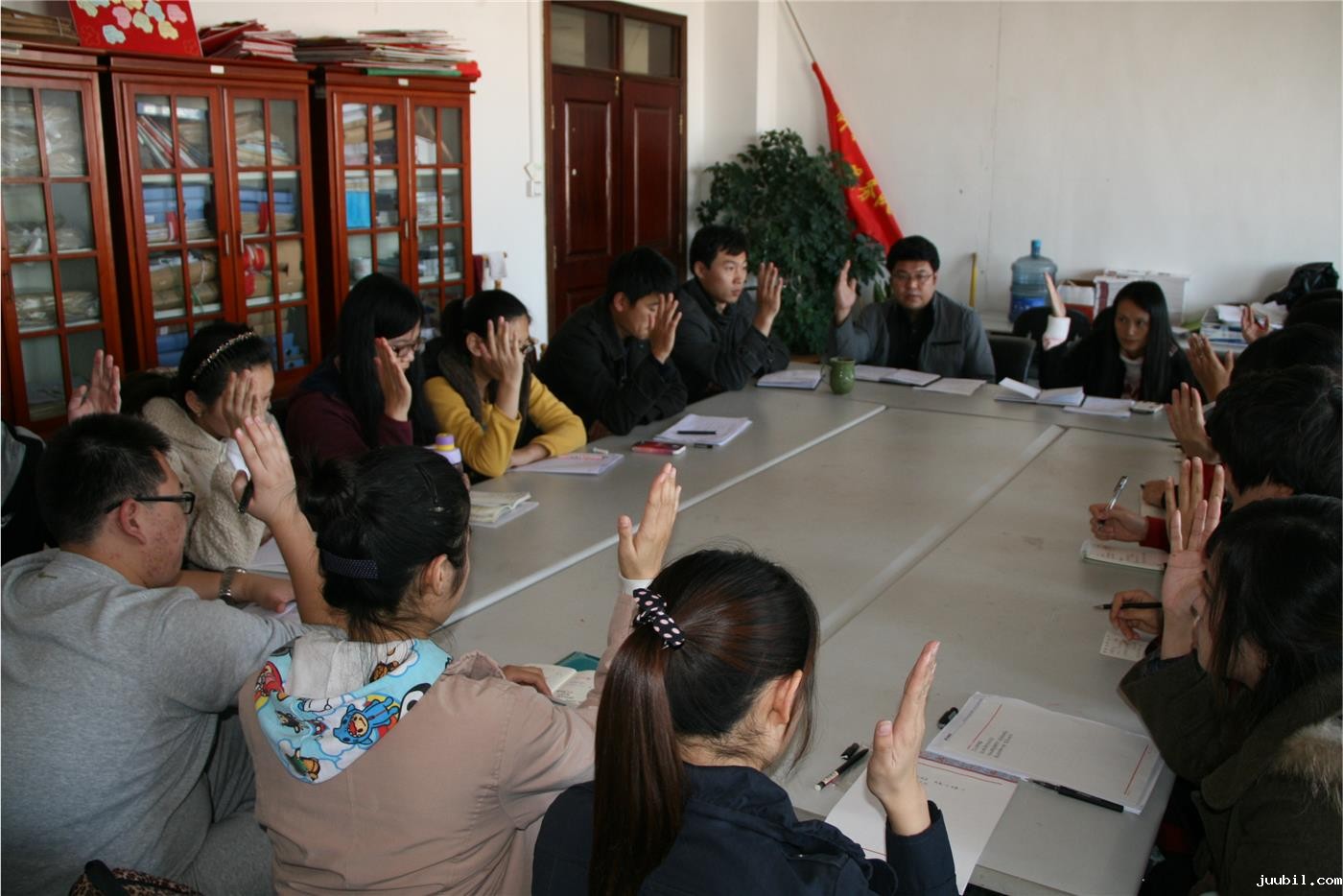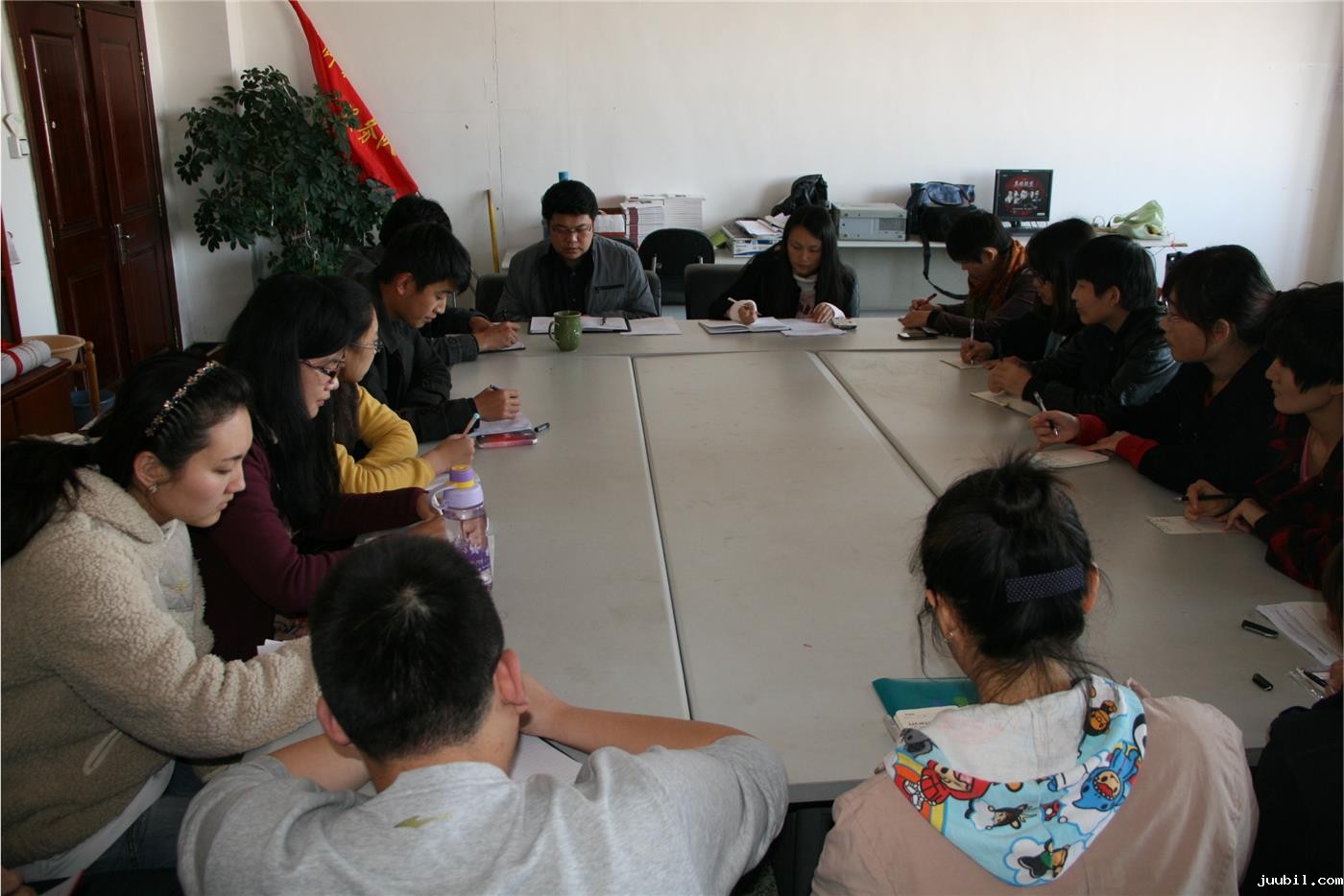 会议伊始,姚书记作了首要发言,对党员以后的发展问题提出了几点要求,强调发展程序、考核程序等要成熟一个发展一个。随后,姚书记宣布了学生党支部换届选举的结果并进行了举手表决,在与会人数符合投票有效的情况下,新一届学生党支部委员在全票通过的情况下正式成立。宁晓文担任学生党支部书记,李凯担任统战委员,徐哲担任纪检委员,张正旭担任组织委员,王永力担任宣传委员。新的委员各自进行了就职发言,表示将努力做好本职工作,开展好党组织的活动。接下来,姚书记就群众路线教育展开主题民主会,群众路线教育活动贯穿“照镜子、正衣冠、洗洗澡、治治病”的总要求,姚书记重点提出党员要有自我批评和相互批评意识,杜绝一切享乐、奢靡行为,有模范带头意识。会议最后,各党支部成员就目前党支部的情况提出了一些建议,并且党支部委员会委员和党支部成员之间就思想觉悟和工作活动等问题也开展了批评与自我批评。