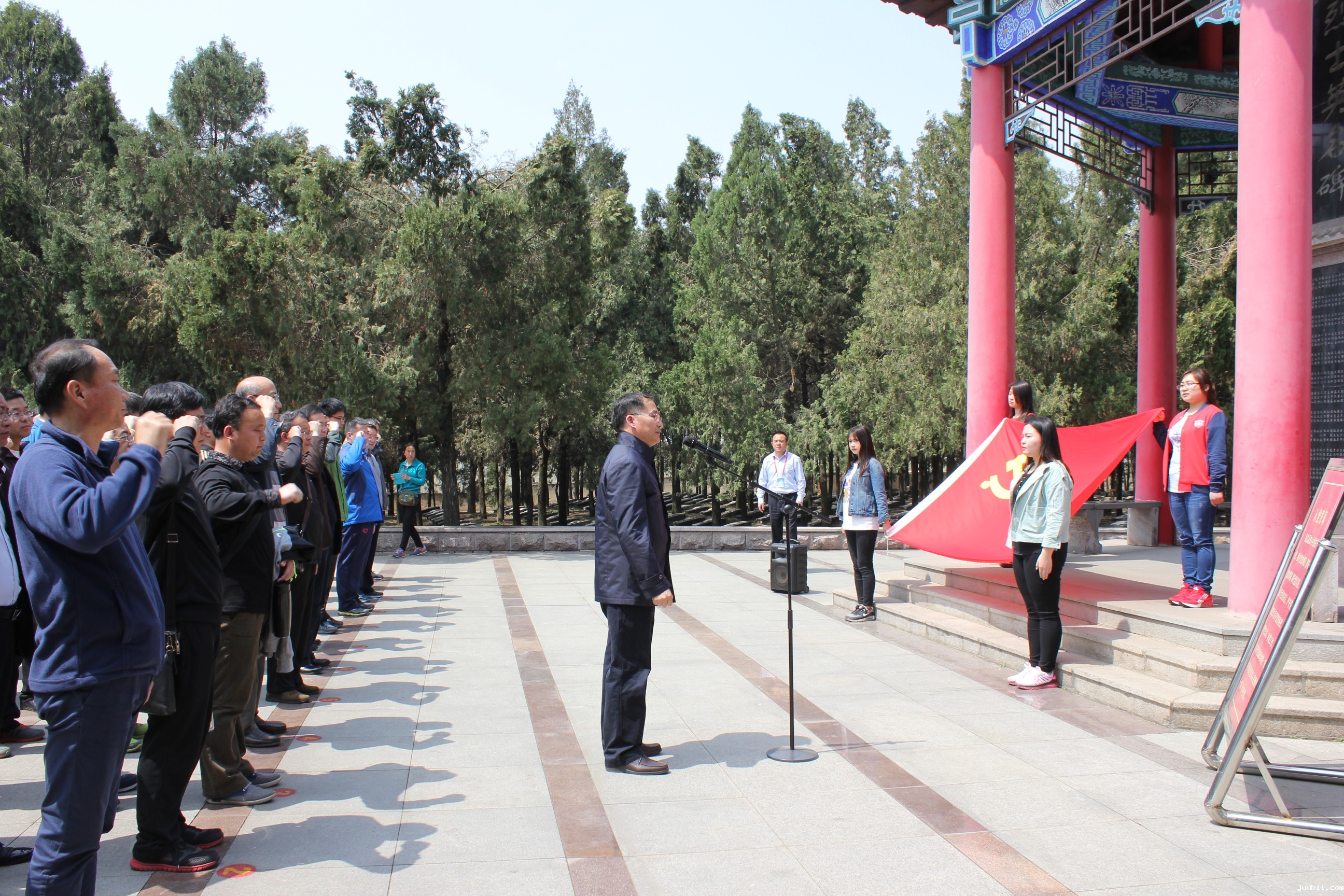 在烈士陵园区,墓地正中是粟裕将军骨灰撒放处,其后是烈士英名塔,塔身镌刻着在孟良崮战役中牺牲的2800多名烈士的姓名,墓区内掩埋着2800多名烈士的遗骨。全体党员向烈士塔敬献花圈,并在粟裕将军骨灰撒放处和烈士英名塔前举行了庄严的重温入党誓词仪式,全体党员举起右拳,面向鲜红的党旗和烈士墓碑庄严宣誓,“我志愿加入中国共产党……为共产主义奋斗终身”的铮铮誓言久久回荡,一种神圣的使命感在每个党员心中升腾。