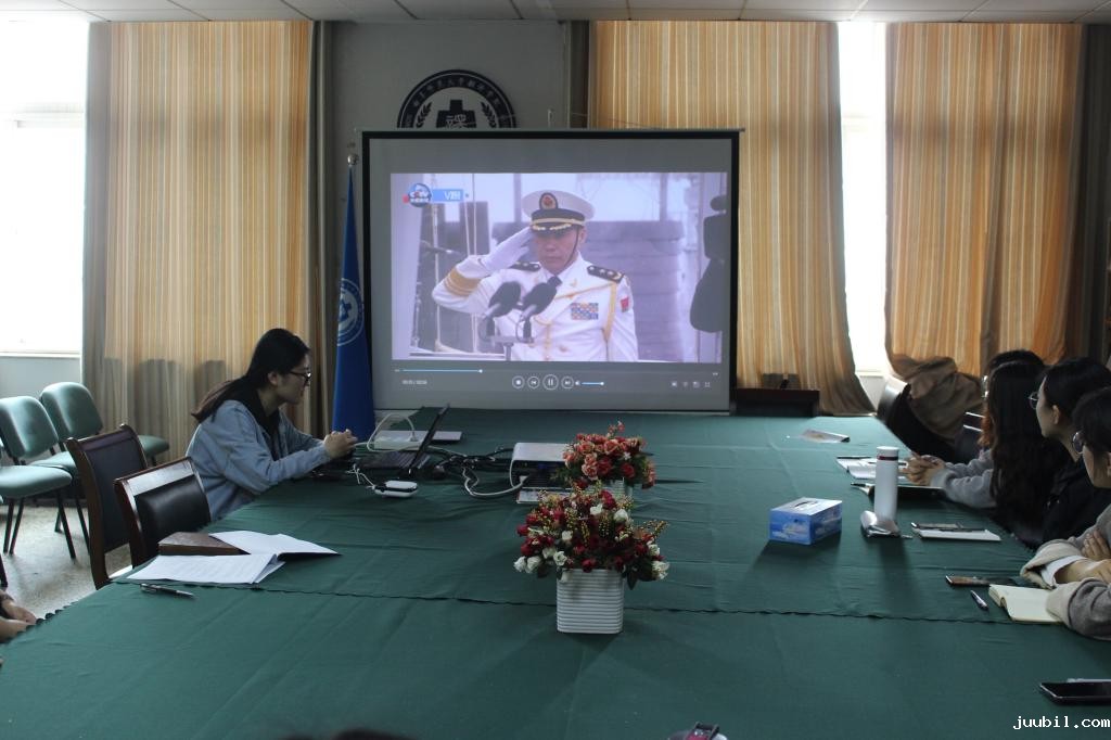 为弘扬中国军人精神、发扬爱军拥军传统,4月24日14:30,优米娱乐纸牌党委副书记董家忠和2016级本科生辅导员王峰带领学院本科生党支部成员进行集中学习,共同观看庆祝中国人民解放军海军建军70周年阅兵活动视频。