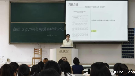王滋润紧扣文科专业背景,结合自身实战经验,为与会同学精准导航。她明确指出,翻译学子应重点聚焦“创意组”与“红色筑梦之旅”赛道,充分发挥语言专长,在国际传播、跨境电商及非遗文创等新文科融合领域深挖潜力、寻求突破。针对备赛关键环节,王滋润着重谈到三点核心策略:一是跨学科组队,汇聚多元视角与技能;二是精雕细琢计划书,务必凸显项目创新价值与扎实的落地可行性;三是优化答辩呈现,善用图表、视频等可视化手段清晰传递核心优势。她特别提醒同学们关注赛事节奏,抢占宝贵先机。