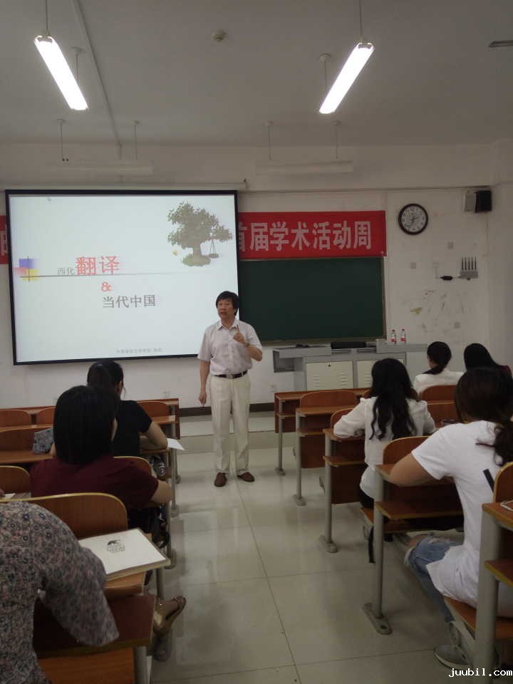 2017年6月2日下午两点半,我院在教学楼JS107教室成功举办了张政教授学术报告会,报告题目为“西化翻译与当代中国”。本次讲座由北京师范大学外国语言文学学院张政教授主讲,我院夏云副教授主持,学院部分教师、研究生和部分本科生参加了此次讲座。