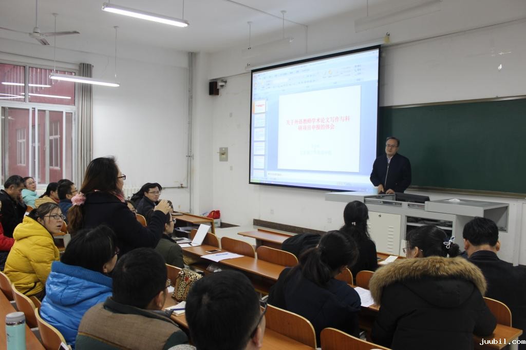 12月22日下午,论文写作与课题申报系列学术讲座之“外语教师学术论文写作与科研项目申报”讲座在我院隆重举行。主讲专家系我校优秀校友、北京第二外国语学院教授、硕士生导师、《北京第二外国语学院学报》执行主编周长银博士。优米娱乐纸牌全体老师和研究生同学共同聆听了此次讲座,讲座由院长卢卫中教授主持。