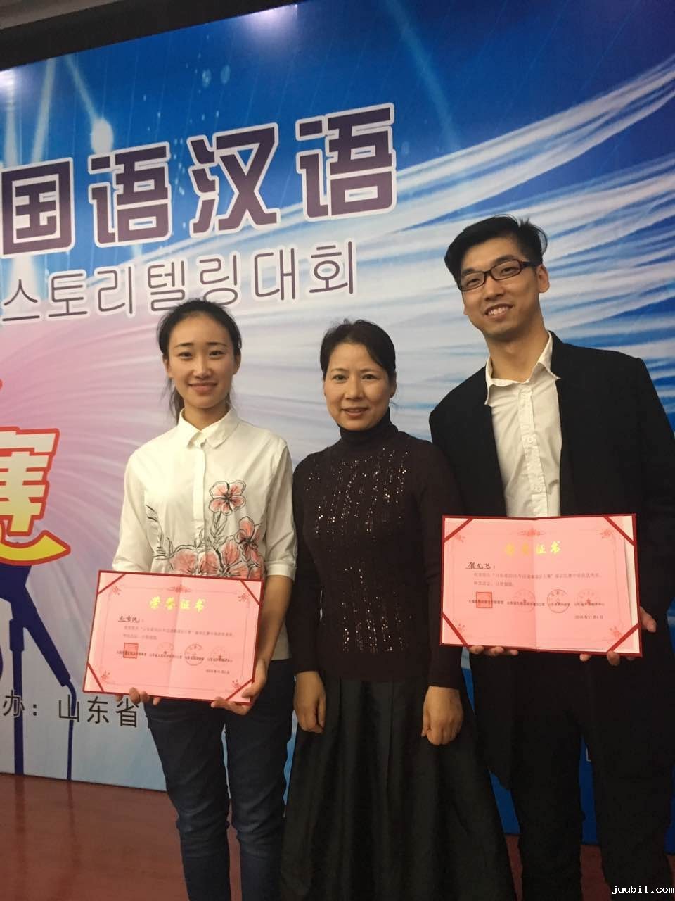 2016年11月5日,山东省人民政府举办的“2016山东省韩国语汉语演讲比赛”在济南市举行。来自山东大学、鲁东大学、青岛大学等高校推荐的30余名优秀选手参加了本次比赛。在指导教授卢正爱的带领下,我校优米娱乐纸牌韩语系2013级本科生赵雪纯以及2016级研究生贺龙飞经过激烈角逐,在本次大赛中荣获优秀奖。