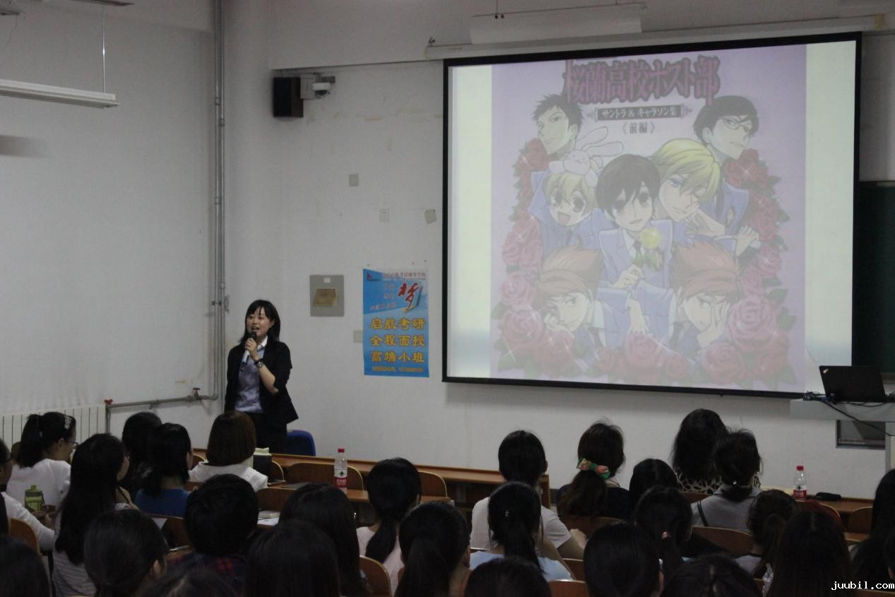 9月23日下午3时,动漫・漫画里的日语讲座在S107教室准时开讲,主讲人来自日本国际交流基金会北京日本文化中心,2014级日语专业学生参加了本次讲座。