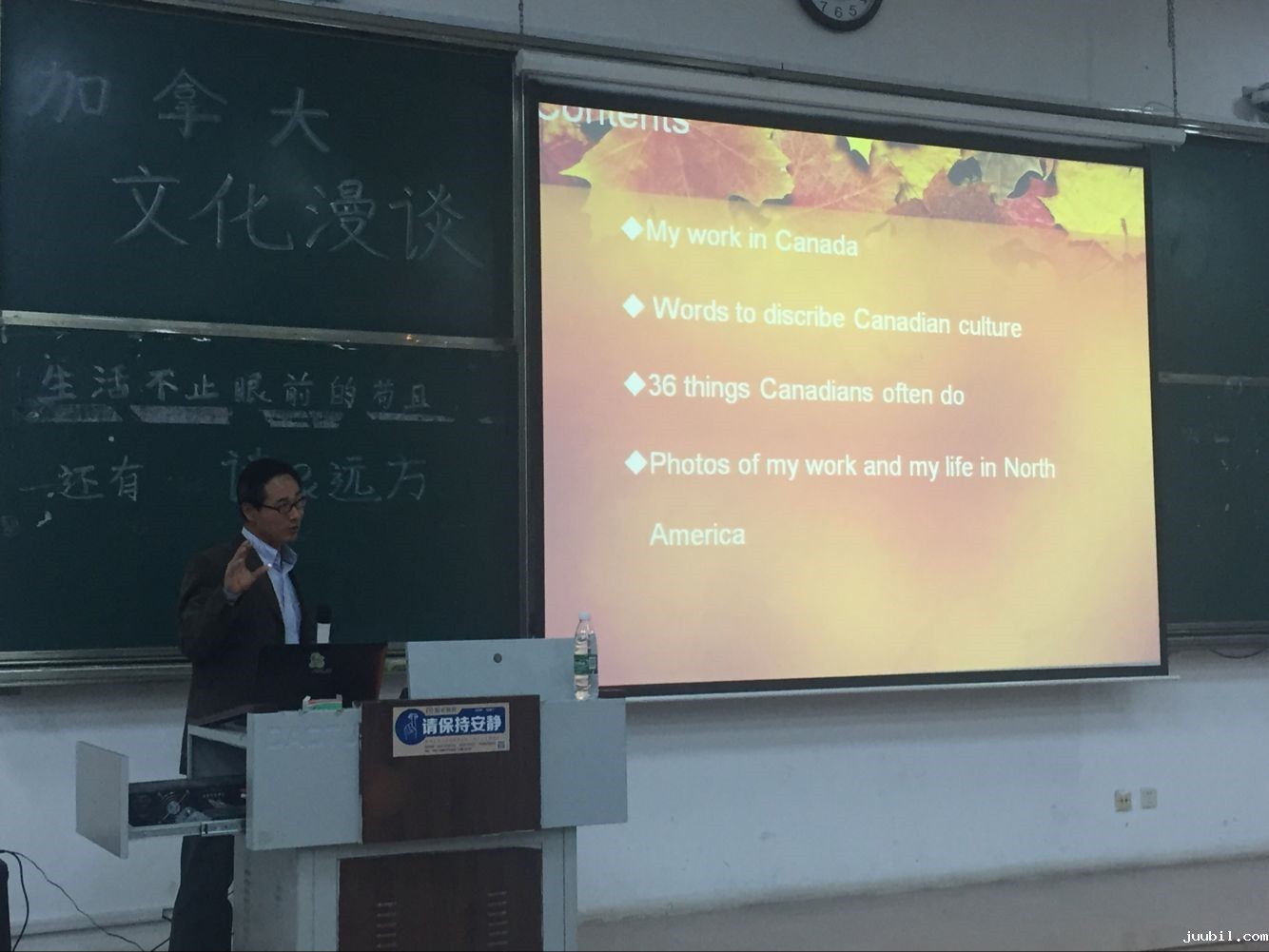 为了使同学们深入了解与体会加拿大的文化,由优米娱乐纸牌杨建华副教授主讲的“加拿大文化漫谈”讲座于2016年5月6日在E101成功举行。商务英语系张涛老师主持了报告会,对外经济贸易大学博士刘瑶老师、英语教育系高明兰老师和商务英语系同学出席了本次讲座。