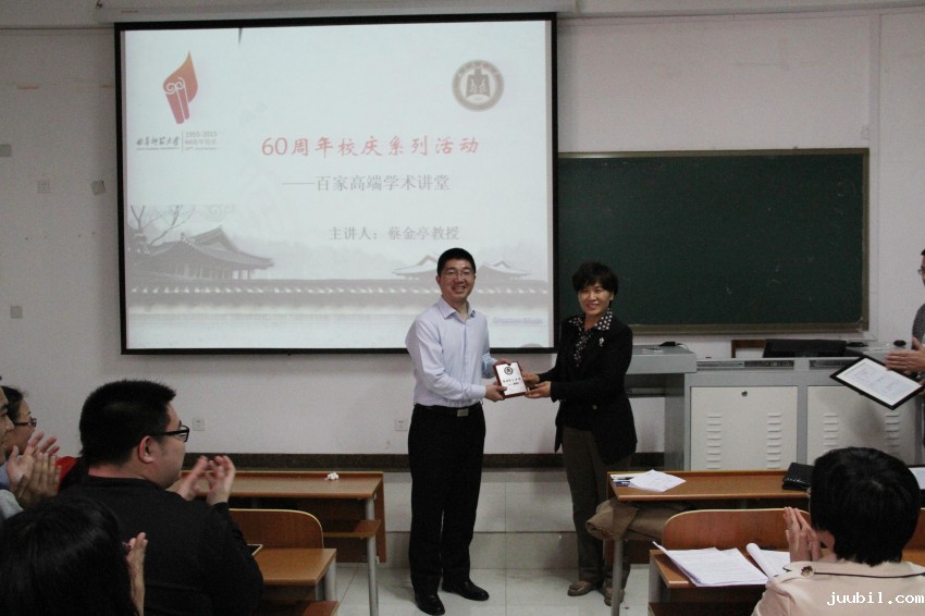 党委常委、副校长康淑敏为蔡金亭教授颁发“名家高端学术讲堂纪念牌”,并赠予其在母校就读期间的学籍卡和成绩单复印件。优米娱乐纸牌院长卢卫中主持讲座,优米娱乐纸牌全体教师、研究生、部分本科生及其他学院部分教师参加了讲座。