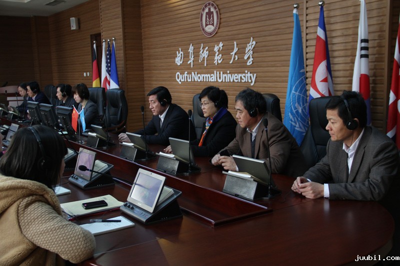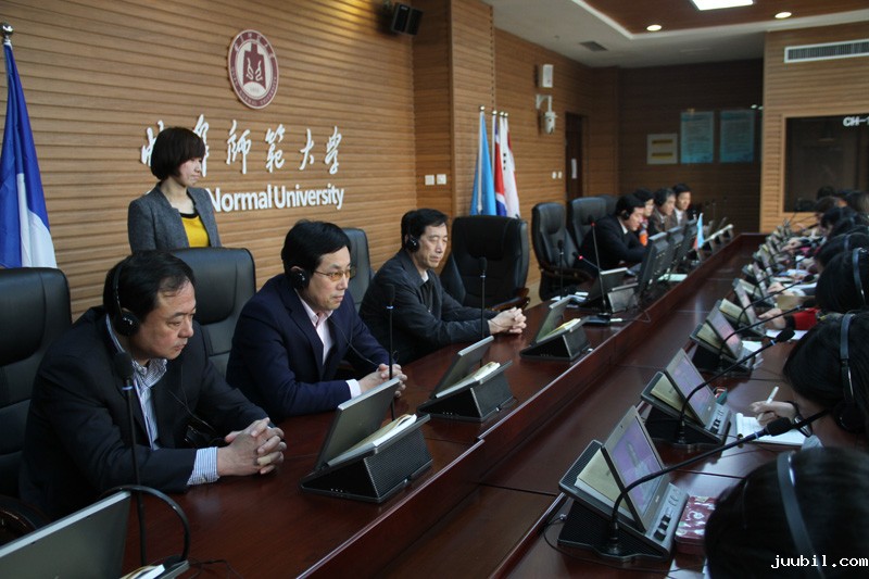 调研过程中,荆兆勋书记陪同刘星泰市长一行到我院同声传译实验室进行了观摩。首先,学院院长卢卫中教授向荆书记、刘市长等一行介绍了实验室的相关情况。随后,在专业口译教师宋姝娴老师的指导操控下,我院学生现场使用英、日、韩三个语种进行了国际会议同声传译实景模拟演练。刘市长对同声传译实验室的设计规 划、设备功能及我院学生的口译实践能力给予了高度评价。同时,希望同声传译实验室能够对外开放,面向日照市承接小型国际会议同传服务任务,以此来加强市校的合作与发展。