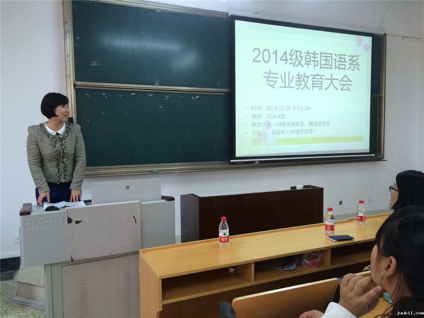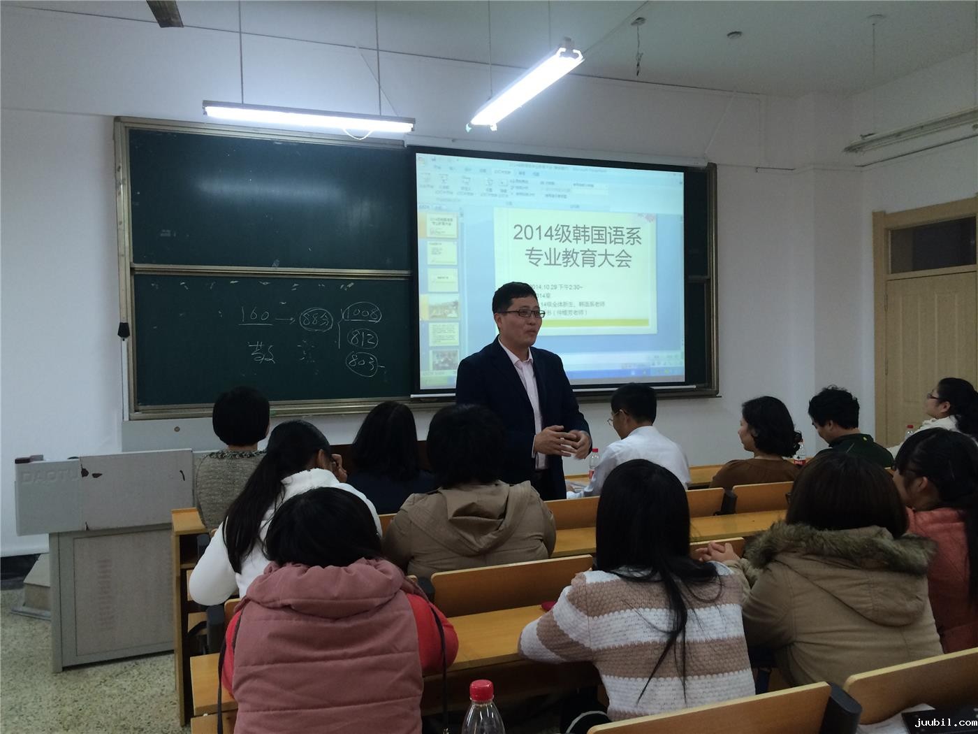 本次见面会使2014级韩语系全体新生更加清楚的了解韩语专业的背景,更加明确韩语学习的目标与努力的方向,为未来四年的韩语学习点亮一盏指路明灯。天将降大任于是人也,必先苦其心志,劳其筋骨,饿其体肤,空乏其身,行拂乱其所为。希望同学们都能带着老师的祝愿,努力拼搏,绽放出自己的光彩!