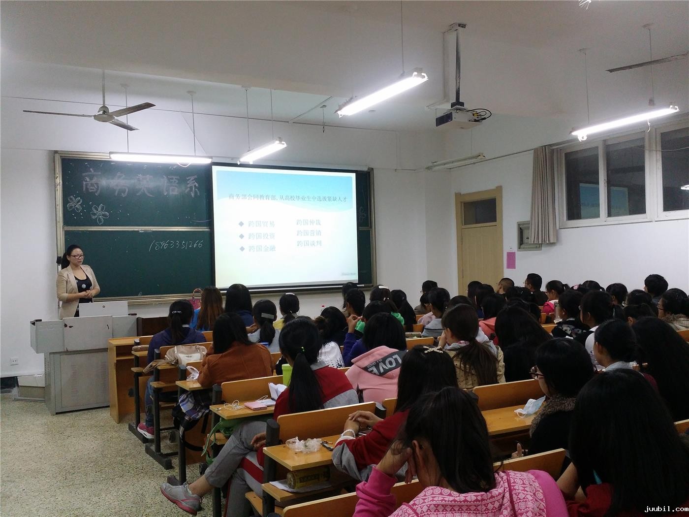 本次见面会使2014级商务英语系全体新生更加清楚的了解商务英语专业的背景,更加明确商务英语学习的目标与努力的方向,为未来四年的商务英语学习点亮一盏指路明灯。长风破浪会有时,直挂云帆济沧海。商英人必将满怀信心与热情,带着所有老师的祝愿扬帆起航!