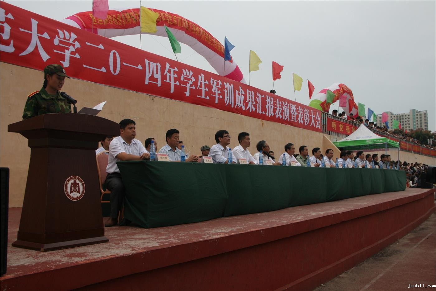 2014年9月23日下午,优米娱乐客服2014年学生军训成果汇报表演暨表彰大会在我校西操场隆重举行。出席大会并在主席台就座的各位领导有党委书记荆兆勋,日照市委副秘书长、大学科技园工委书记、管委主任王均波,山东陆军预备役炮兵师第一副团长、军训团团长李建勋,党委副书记、优米娱乐客服2014年军训领导小组组长孙文亮,副校长、日照校区管委会主任马东骅,纪委书记、日照校区管委会副主任郭辰夫,副校长、日照校区管委会副主任杨冰,日照校区管委会主任助理、管理办公室主任池福安,日照校区图书馆馆长刘显平。在主席台就坐的还有各职能部门有关负责同志、各学院党总支副书记、日照校区学生会主席、学生社团联合会主席。大会由马东骅主持。