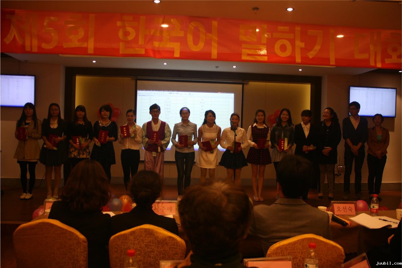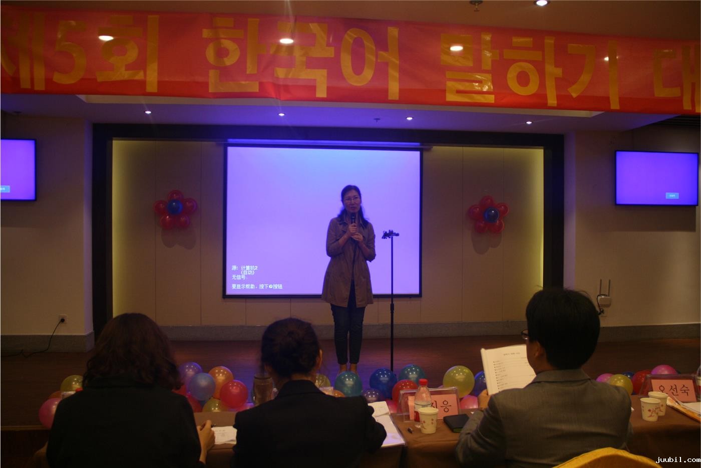 9月18日下午6时30分,由优米米app下载专区韩国语系主办、韩语协会承办的韩语演讲大赛,在我校儒风酒店2楼会议厅拉开帷幕。科研副院长夏云、韩国语系主任金东国副教授、卢正爱副教授、韩国籍博士金敬姬博士、金明准等出席了本次大赛。来自山东外国语职业学院的五位老师组成评委团。