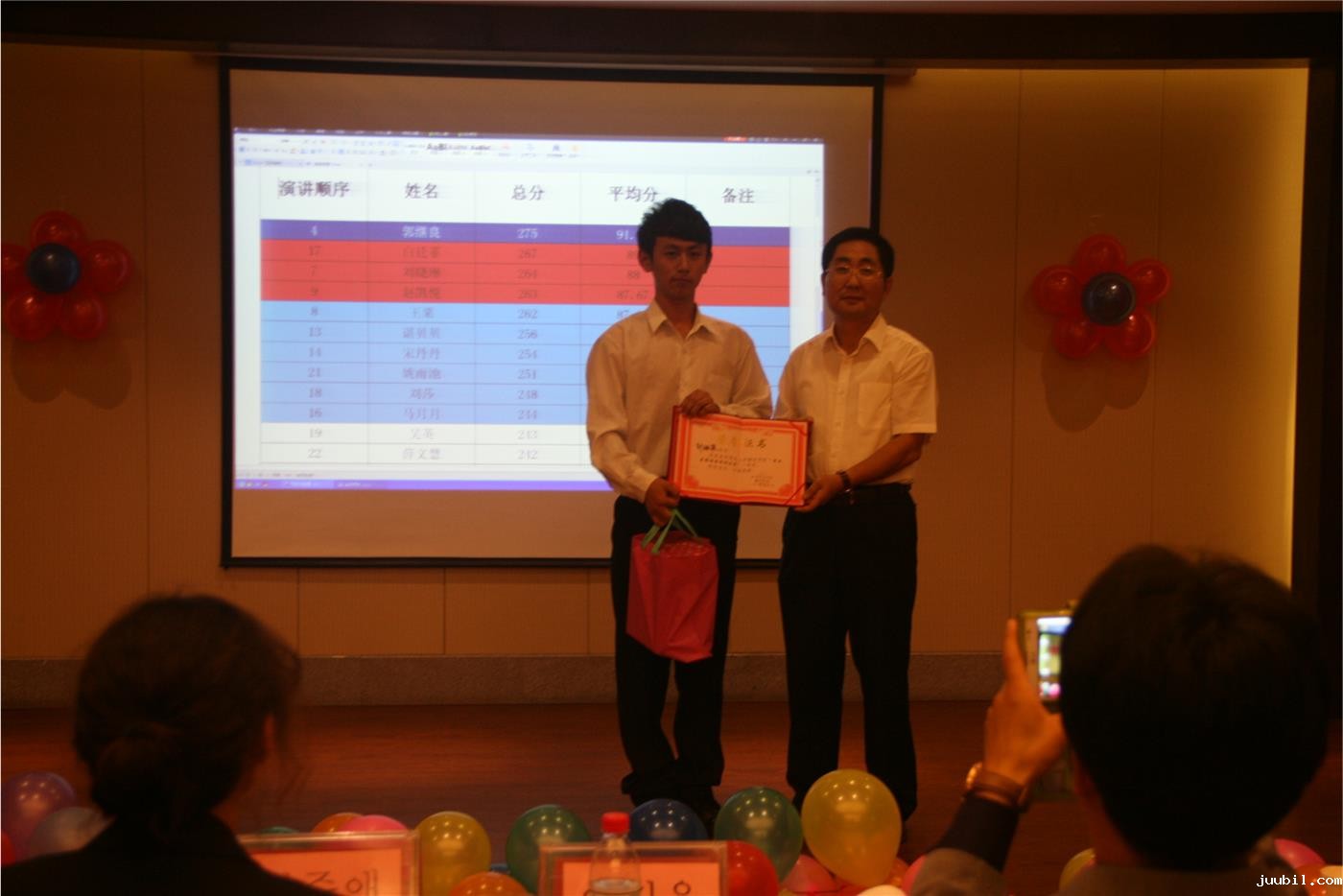 本次大赛共有22名选手参加,参赛者须进行演讲及接受评委现场问答两个环节。评委团将从选手的主题内容、演讲能力、即兴问答规定时间和观众反应进行评分。比赛伊始,科研副院长夏云、韩国语系主任金东国依次致辞,评委团代表为选手及观众宣读比赛规则。据介绍,今年是大赛的第五届,不仅参赛规模发展,内容也更加丰富。比赛中,参加本次韩国语演讲大赛的选手他们以新颖的演讲主题、流畅的表达、丰富的表现形式赢得了现场观众的阵阵掌声。经过激烈角逐,郭继梁获同学喜获一等奖,白廷菲、刘晓琳、赵凯悦获得二等奖,王粟等获得三等奖,12名同学获得优秀奖。比赛最后评委团代表总结赛况并致辞,金东国教授为五位评委颁发了奖品及证书,至此大赛圆满结束。