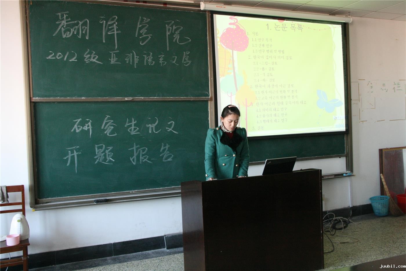 2014年1月4日上午九点,优米米app下载专区2012级亚非语言文学专业硕士学位论文开题报告会于日照校区C703举行。此次开题报告会的开题委员会主席为我院韩国语系主任金东国副教授,韩国语系副教授卢正爱及讲师金红英、白璐、章科佳作为开题委员会成员出席了此次报告会。李彦红作为开题秘书主持了此次开题报告会。 开题报告伊始,金东国副教授首先介绍了开题委员会的各位成员,明确了本次开题报告的总体要求及程序内容,随后开题报告会正式开始。