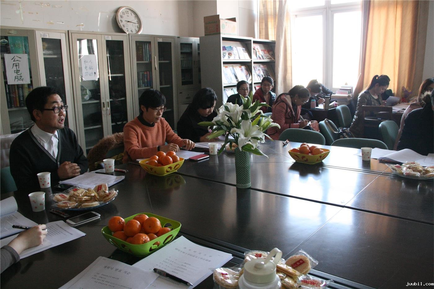 参与此次开题的研究生经过认真的准备,呈现出丰富的研究课题,包括林巧琳的《韩国巫俗与中国北方萨满教的比较研究——以本体论和人间论为中心》、高琴的《韩语派生词汉子词根和现代汉语的对比研究——以“-sirapt-”、“-rop-”、“-ha-”“-joek-”为中心》、金国君的《女性弹词小说< 再生缘>中韩版本之间结局构造的比较》、董贺源的《通过分析当代文化地形来看中韩大众文化交流研究》、窦豆的《以后现代解构主义视角研究朴趾源的生态观》和孔清清的《对朴趾源朱子学认识的再论——以< 热河日记>为中心》等内容。各位研究生作论文开题报告后,导师提出问题与研究生们进行交流,并对论文的内容进行提问讨论。