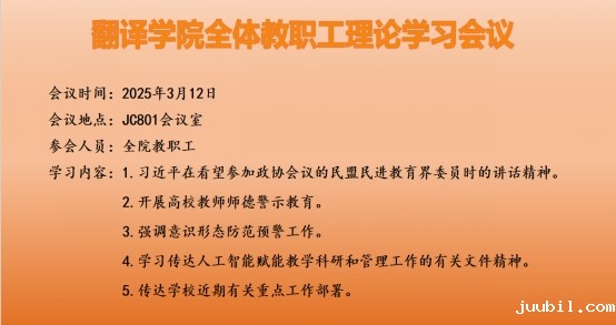 为全面深入学习领会习近平总书记在看望参加政协会议的民盟民进教育界委员时的讲话精神,持续加强教职工思想政治引领、助推新时代师德师风建设,优米娱乐纸牌于3月12日下午在JC801会议室召开全体教职工理论学习会议。